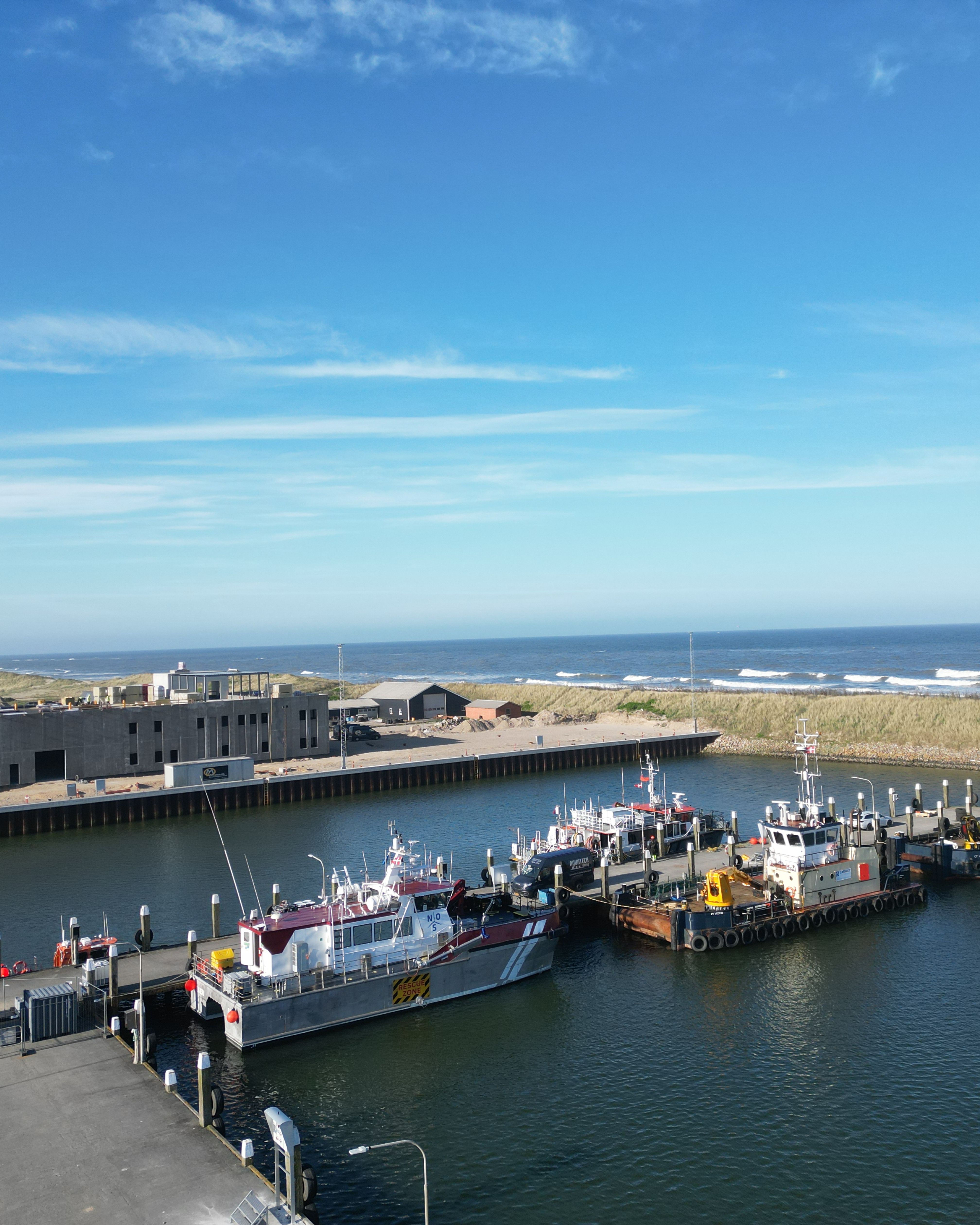 Thorsminde Havn tilbyder moderne faciliteter til offshore service og O&M-aktiviteter – med landstrøm, vandforsyning direkte på kajen og selvbetjeningsløsning til brændstof. Vanddybden er 4 til 5 meter, og området er tilgængeligt døgnet rundt.