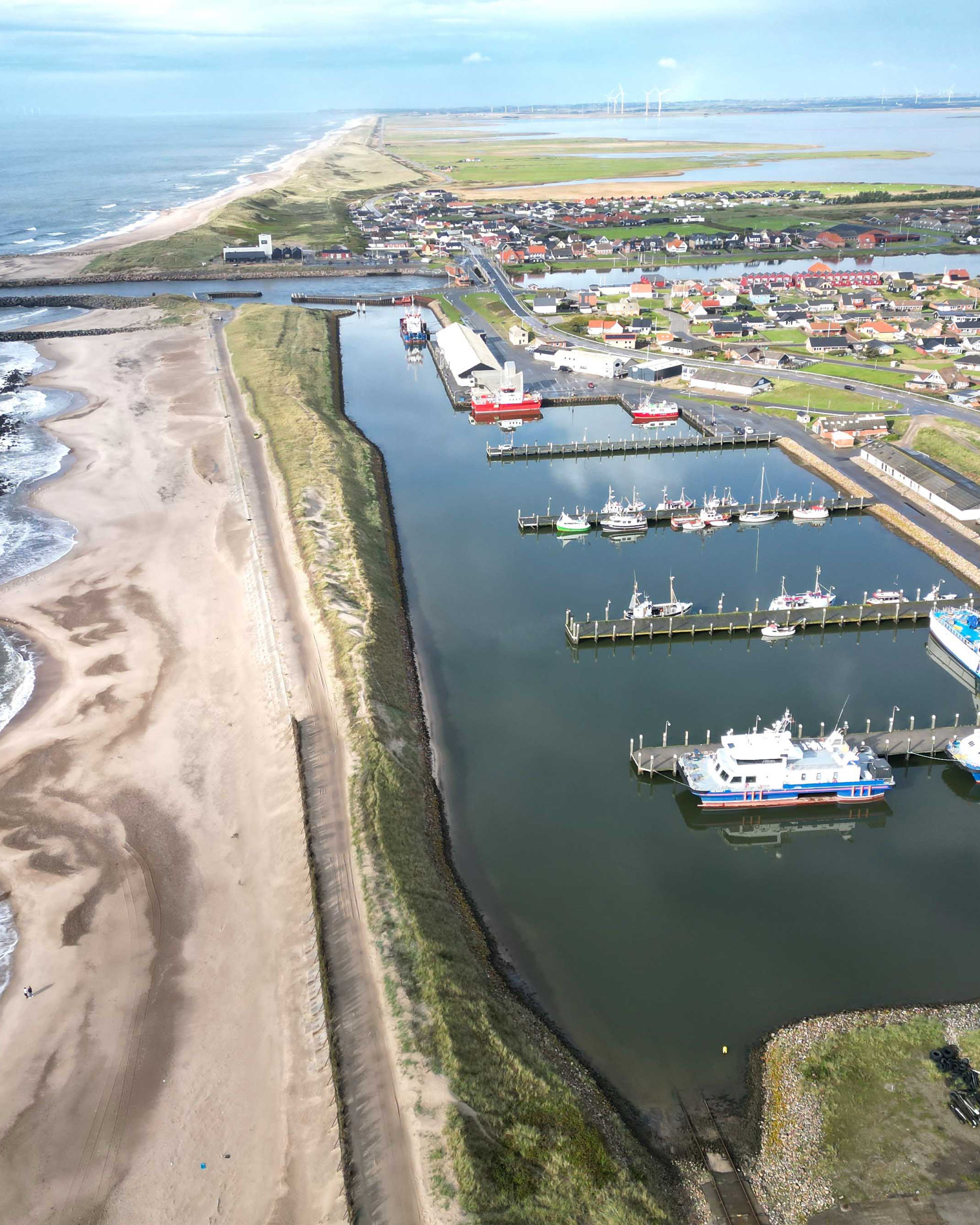 Det kræver kvadratmeter i massevis at etablere en servicehavn i en by på vestkysten med omkring 300 indbyggere. Dyk ned i tallene bag Thorsminde Havn og de faciliteter, som havnen tilbyder til de energiselskaber, der har slået sig ned i byen.